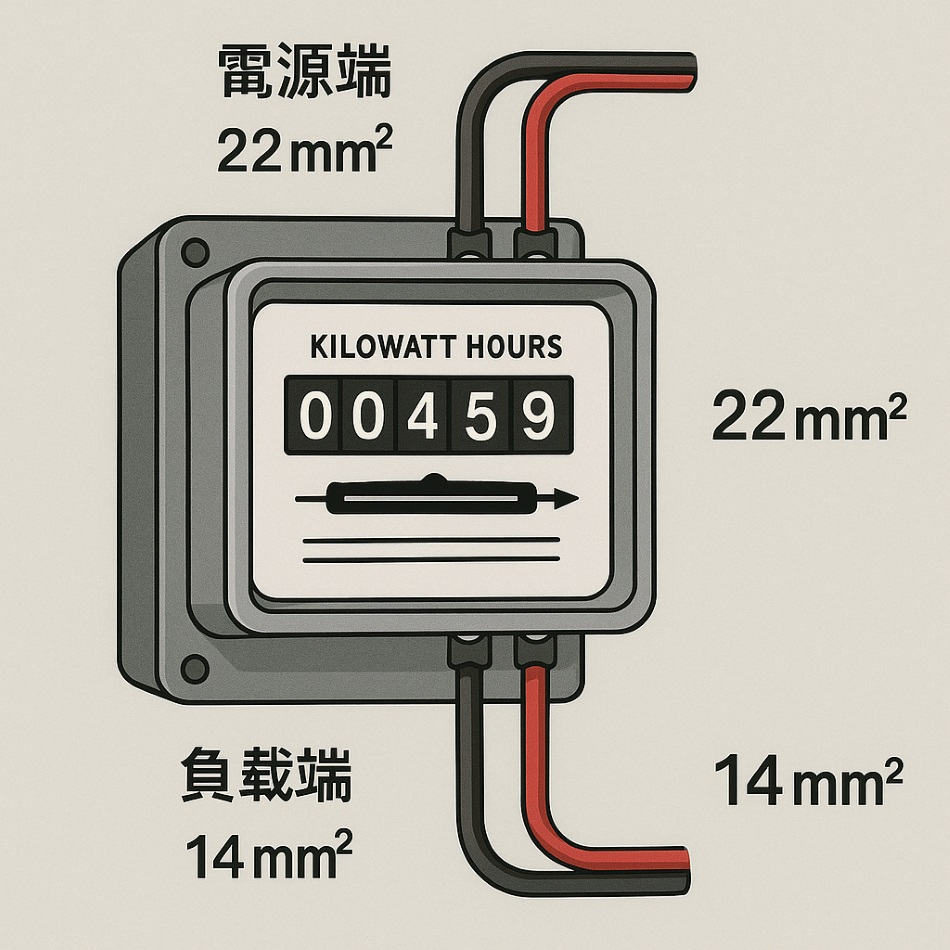 電表接線示意圖|電源端與負載端線徑配置說明